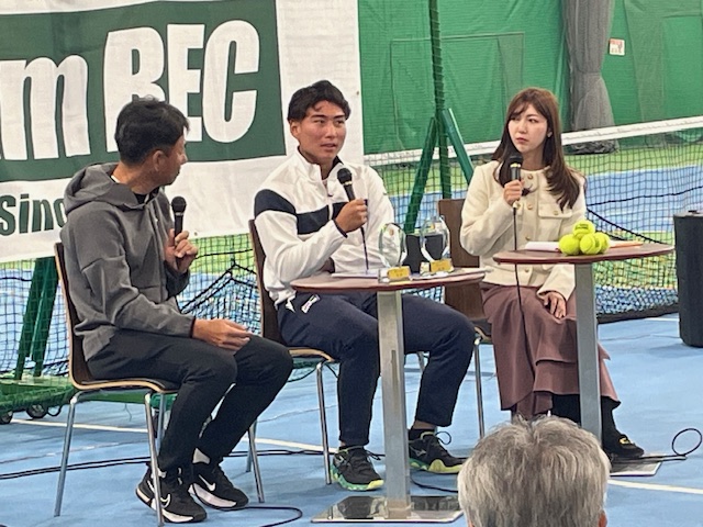 大手テニススクールのイベントを担当させて頂きました。トークショーのMCキャスティングから進行台本なども対応可能です。